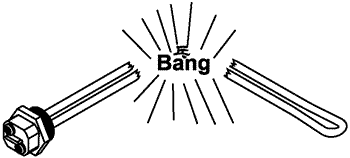 圖2 FIGURE 2 注:將電源通到沒有淹沒在水里的加熱元件上,將導致加熱元件的損壞。對于這種原因導致的加熱元件的損壞,制造商對此將不承擔質量保證的責任。 |