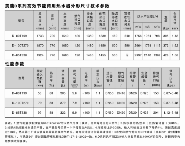 美國鷹牌燃氣熱水爐G62-100T88-4NV/380升